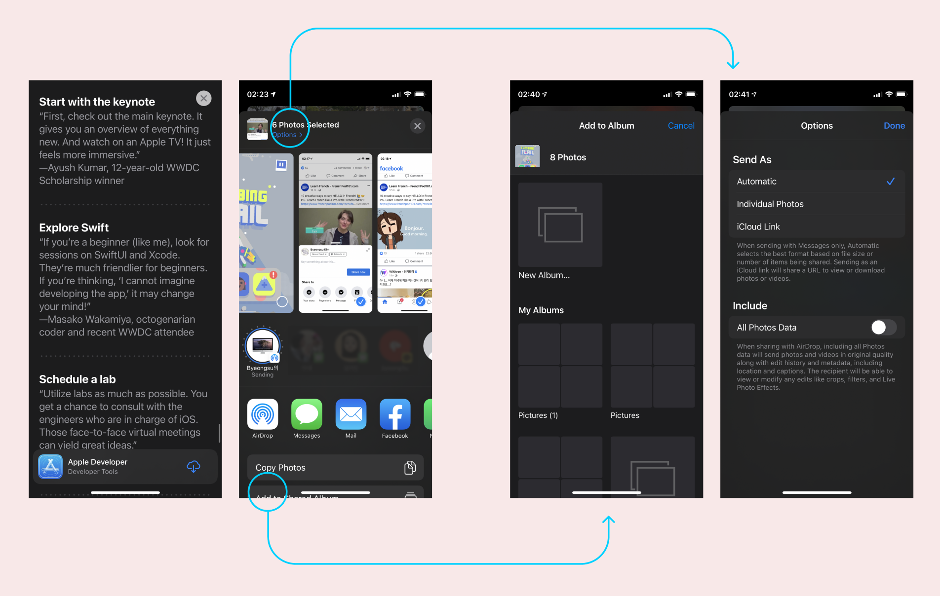 이걸 보면, Save to Files 기능은 최소 한 개 이상의 추가 페이지가 필요해. AirDrop처럼 하나의 기능을 띄우는 것만으로도 애플 스스로의 규정을 어기는 거지만 어쨌든 하나의 기능을 수행하니까 그러려니 해도, Save to Files의 경우는 뎁스를 타고 들어가는 액션이나 새 폴더를 만드는 액션까지 추가되었기 때문에 애플 규정을 제대로 어기고 있는 셈이야.