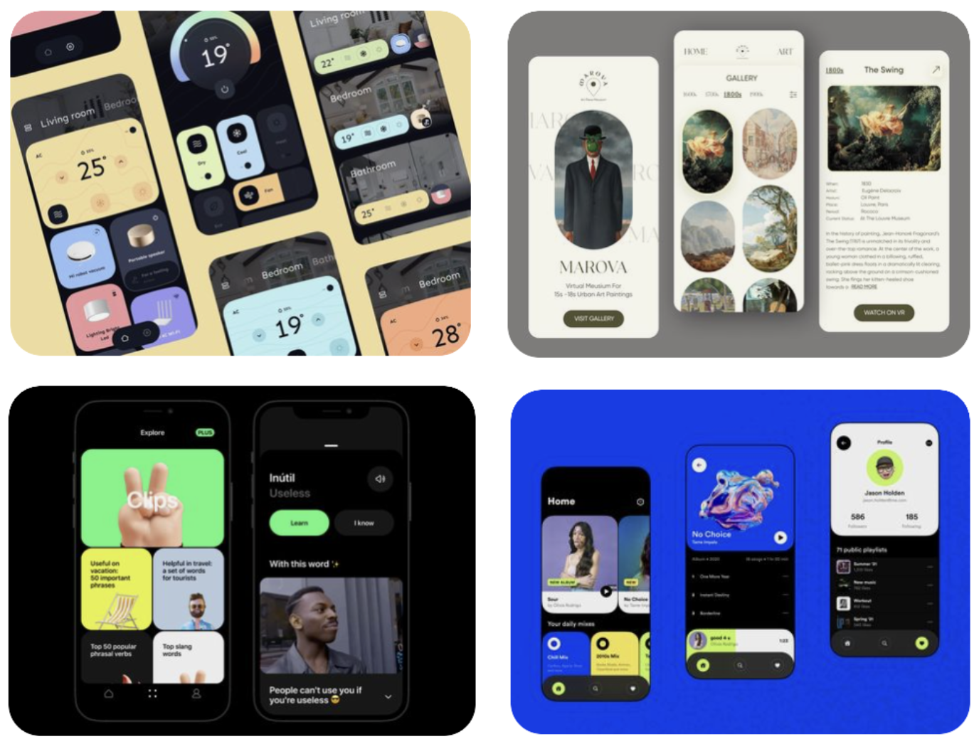 한 화면에 여러 기능과 정보를 독립적으로 운용하기에 최적인 포맷 같아. 라운딩이 주는 독립성이 생각보다 대단하다는 걸 이번에 많이 느꼈어. 비록 나는 정보(텍스트)와 이미지를 나누는 정도로만 활용했지만, 좀 더 탐색하다 보면 더 많은 용도를 찾을 수 있을 것 같아. 이를테면 옛날 포폴에서는,