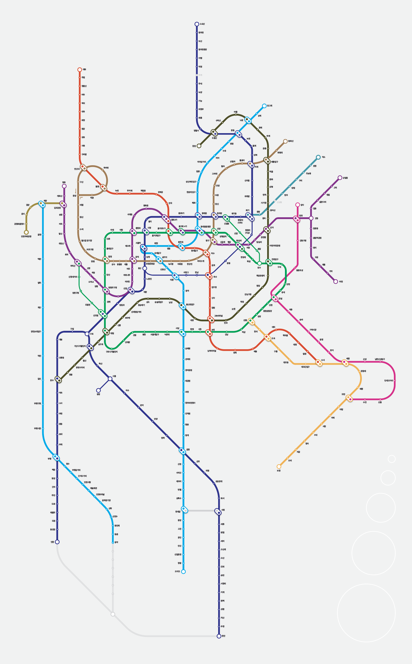 요즘은 핀셋처럼 유저를 타게팅하는 시대인데, 사회과부도를 외우는 감성이 아닌 다음에야, 도봉동 사는 사람이 부평 가는 길을 한 눈에 봐서 어쩌자는 얘긴가 싶은 거지. ^^ 유저의 분포와 상황게 맞게 제시하는 요즘 트렌드를 보자면, 애초에 "전도"가 왜 필요한가 싶어. 필요할 때 필요한 구간만 볼 수 있으면 되는 거 아닐까? 정적인 지하철 노선도 자체가 의미 있는 걸까? ^^