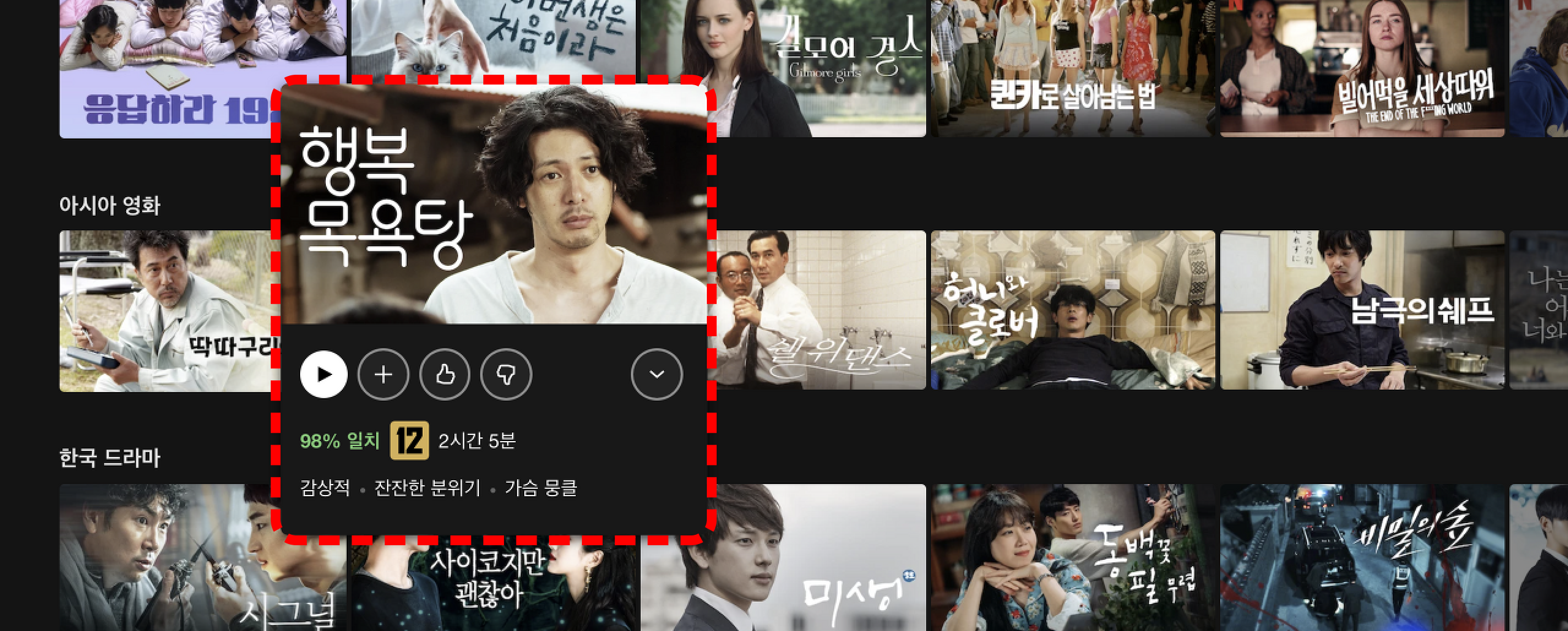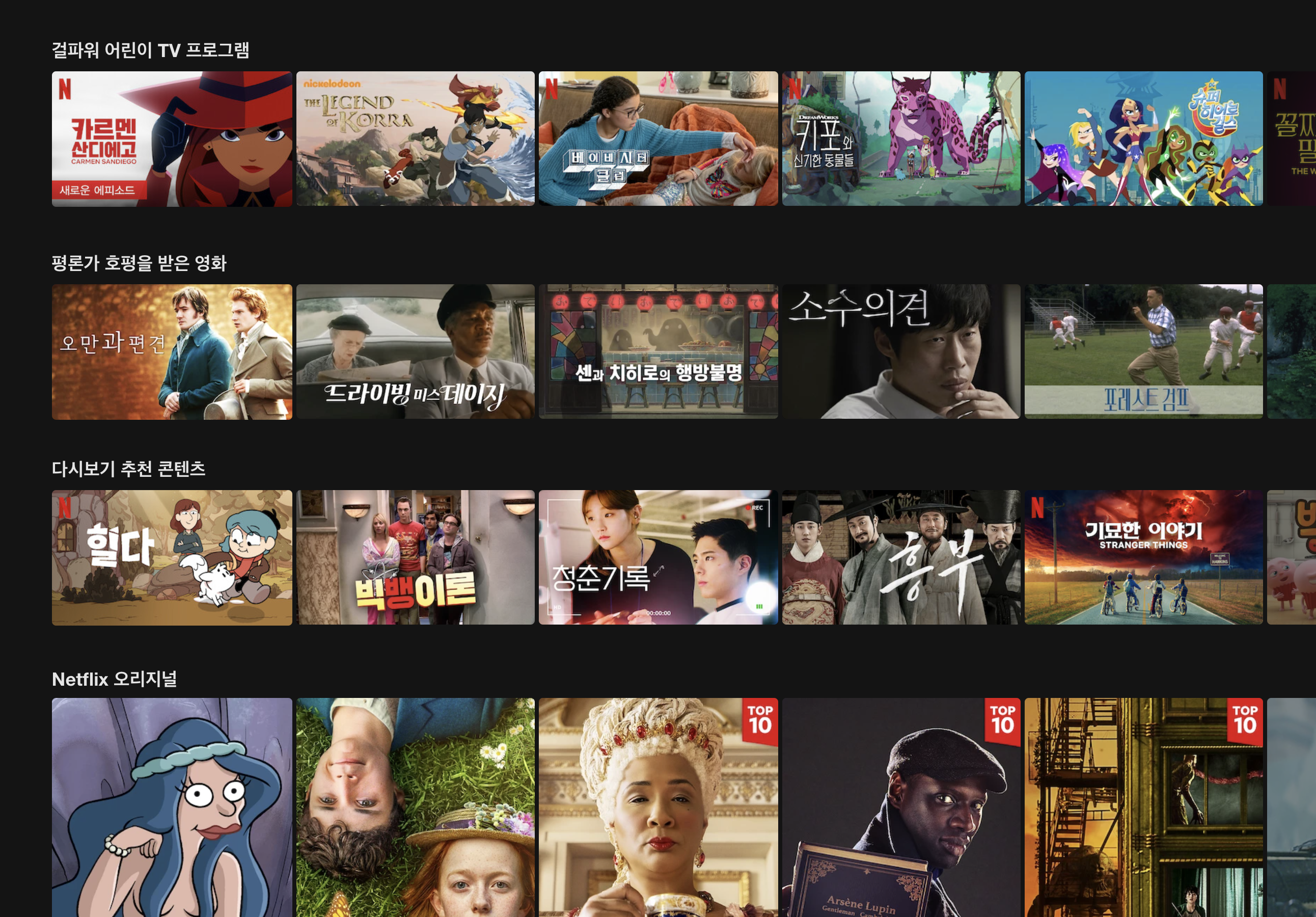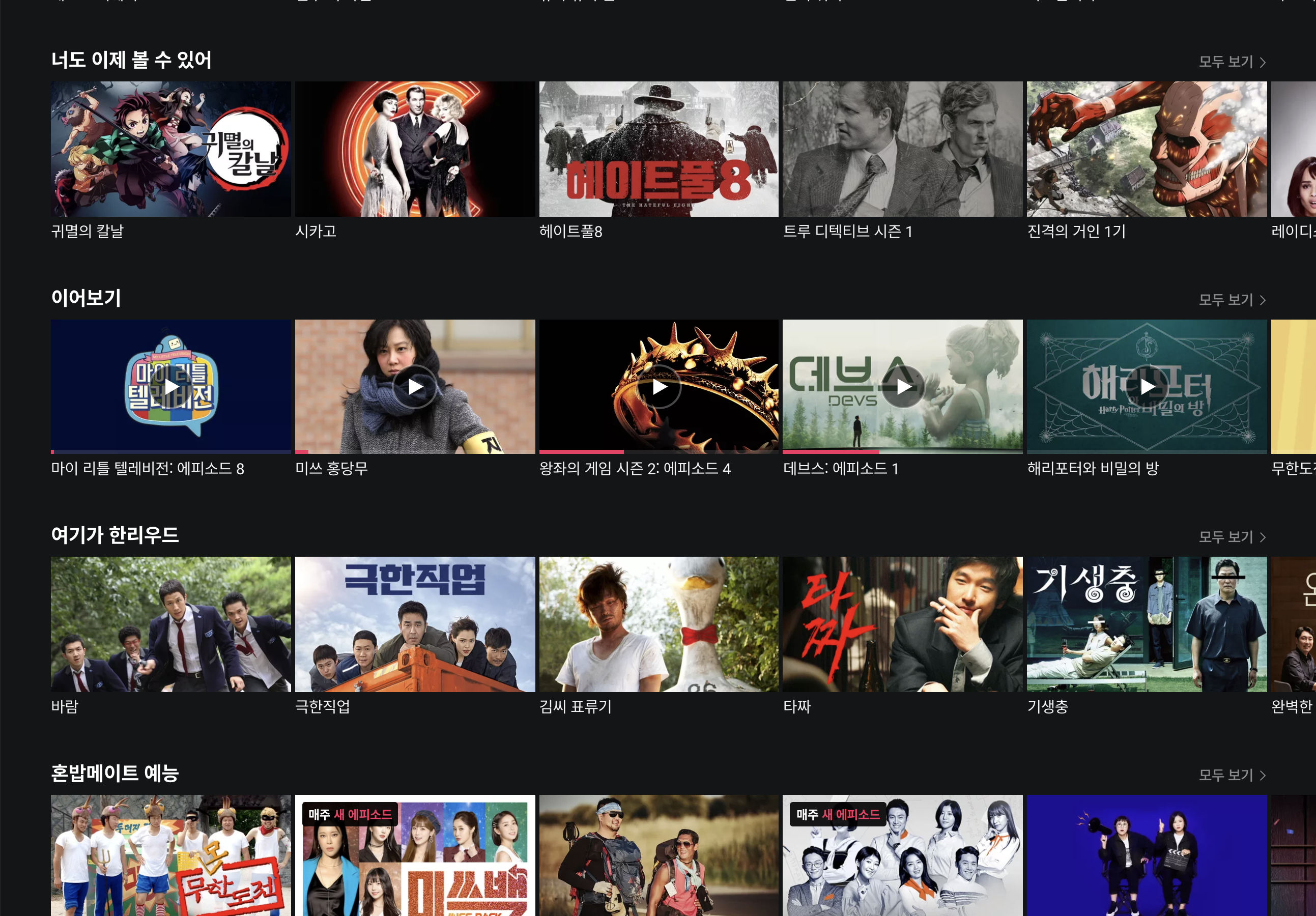 위는 넷플릭스고, 아래는 왓챠야. 넷플릭스는 작은 라운딩이 있고, 왓챠는 없어. 구별이 될까? ^^
