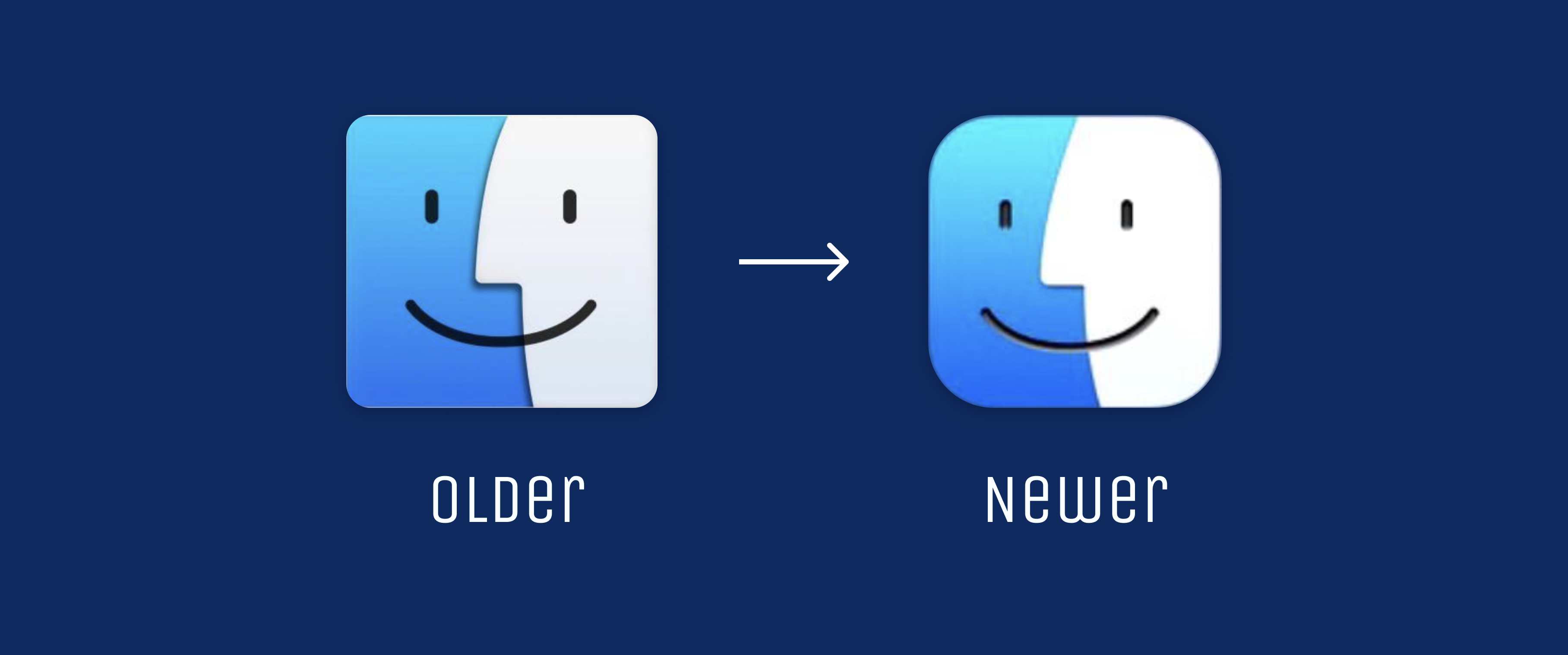 이번에 업데이트된 Mac OS 'Big Sur'의 아이콘 변화야. 라운딩이 커진 이유는 위 내용과 관계없이, 아이폰 앱과 맥 앱의 경계가 사라질 것이기 때문이지. (새로 출시된 M1칩이 사실은 모바일 CPU거든)